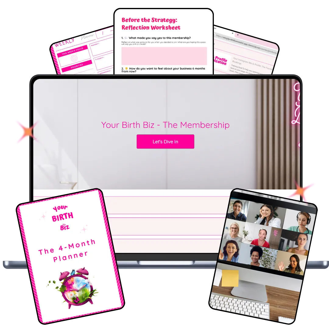 Your Birth Biz is a monthly membership for doulas, lactation consultants, antenatal educators and other birth & postpartum professionals who want consistent support, clarity and momentum in their business — without the pressure of doing all the things.